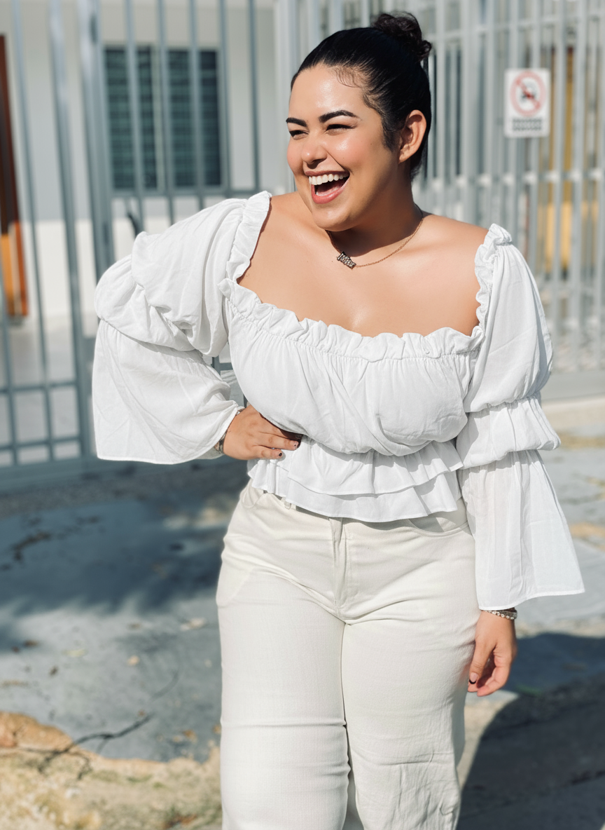 Cómoda al usarla impactante al verla, llena de detalles, esta pieza elaborada en Chalis rayón importado, material 100% algodón, con caída ligera y muy fresca, nuestra blusa Madrid con sus detalles delicados te harán lucir fresca, cómoda y elegante. La prenda consta de escote recto y fruncido y mangas encauchadas que se ajustan a tu silueta, los lazos en la espalda ajustables te darán mejor libertad de movimiento y un toque sexy, manga 3/4, fit oversize.
