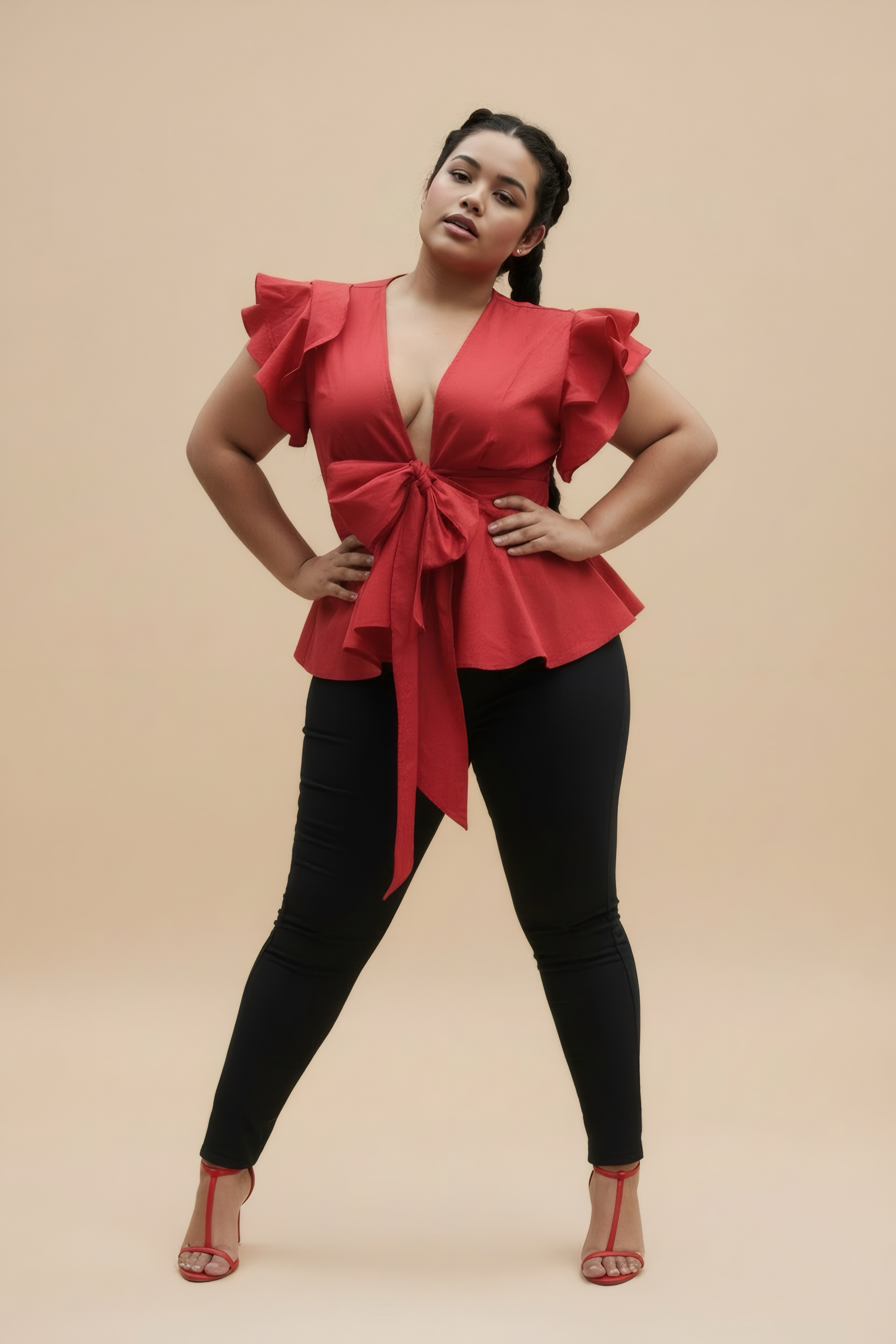 Color, carácter y confianza son las 3 cualidades que inspiraron a nuestra diseñadora a crear esta pieza, elaborada en popelina stretch, con un escote profundo en "V" y pinzas en el busto faja moldeadora al rededor de la cintura, que termina en un hermoso lazo. Mangas tipo bolero que aportan frescura y estilo a esta hermosa prenda, y una bella faldita inferior que aporta uniformidad a nuestra figura.