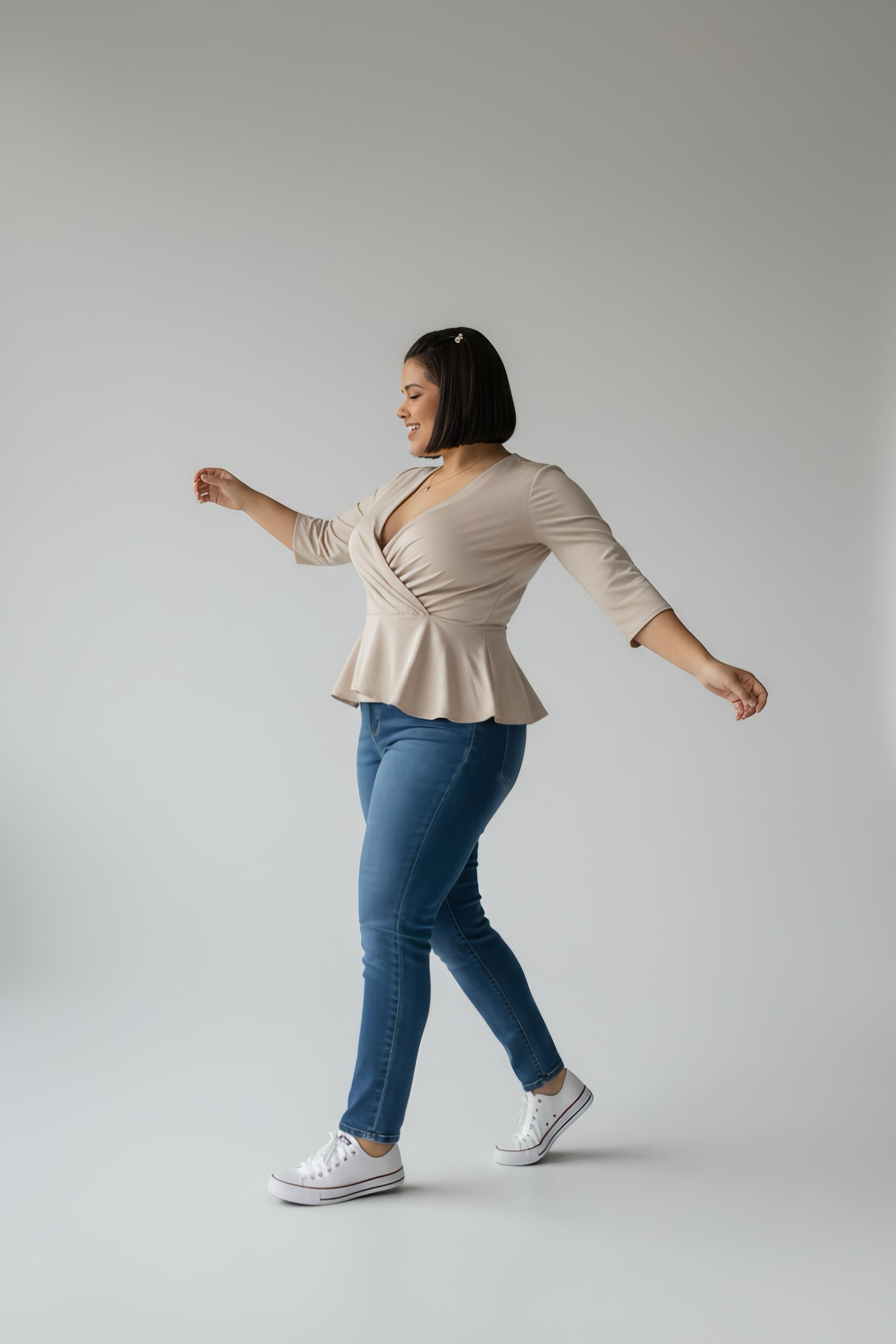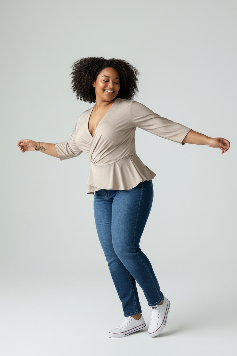 Deborate el mundo con tu confianza natural, esta blusa te ayudará a hacerlo, elaborada en jaibel americano, le aportan a esta prenda una suave textura y una caída maravillosa, cuello en V en cascada y con doble broche interno. Mangas en 3/4 con pliegues que no aportan volumen, corte princesa leve para enmarcar la cintura, parte inferior un poco más larga de lo que acostumbramos, para brindarte seguridad y comodidad. Un suave elástico interior termina dándole a esta elegante prenda el toque final. Nuestras hormas inteligentes te darán una elegancia sin esfuerzo y actitud poderosa.