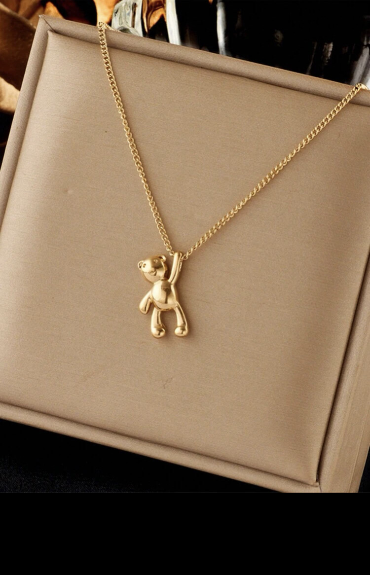 Preciosa cadena en acero, con un muy lindo dije de osito en color dorado, elegante, tierno y llamativo.
