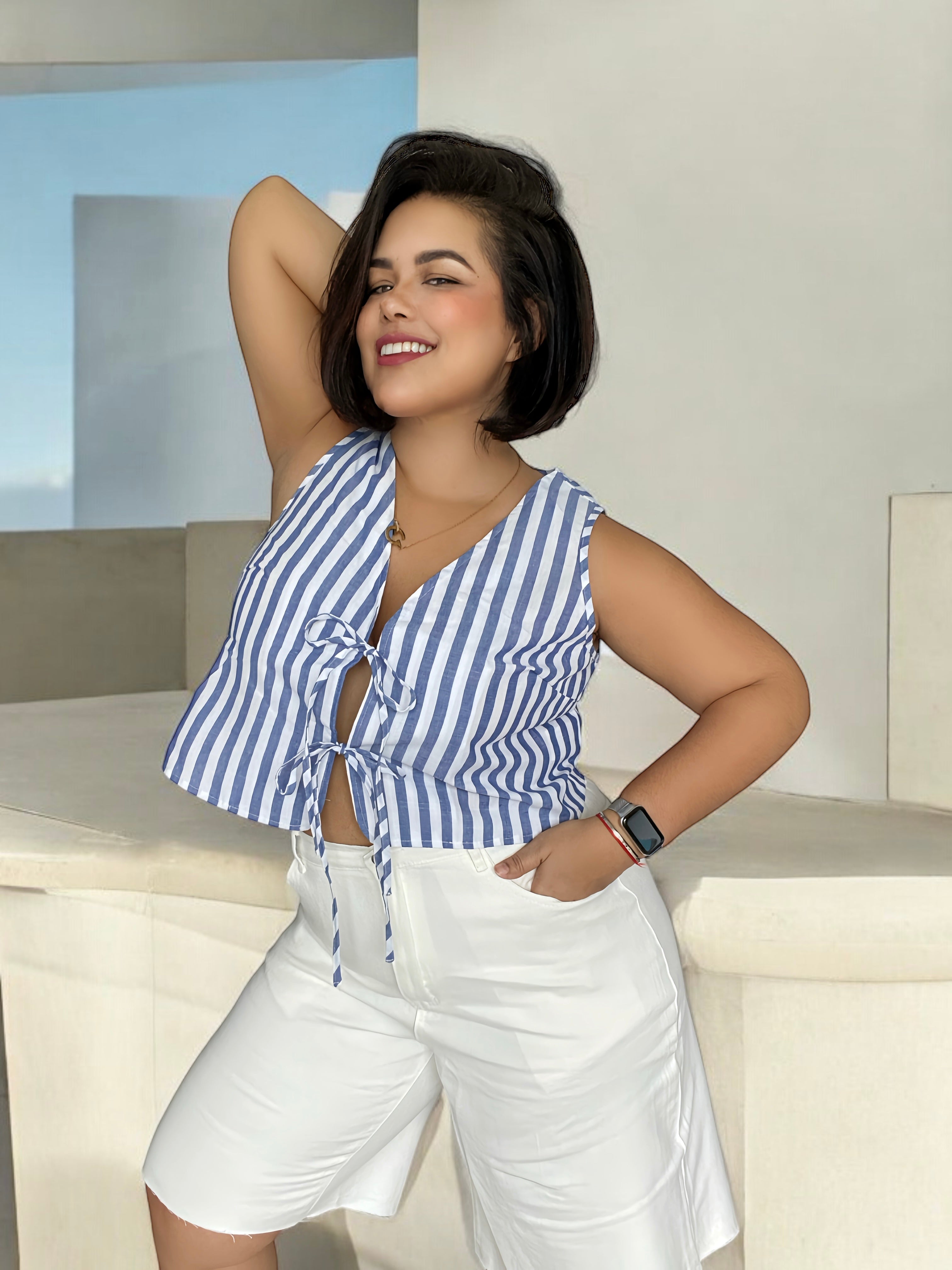 Eleva tu outfit con este espectacular chaleco de rayas, un accesorio de tendencia que no puede faltar en tu armario. Confeccionado en un material fresco y ligero, este chaleco es ideal para cualquier estación del año. Sus rayas, en la sofisticada paleta Old Money de la temporada, aportan un toque de elegancia clásica a cualquier conjunto, combinando a la perfección con estilos formales e informales. Perfecto para quienes buscan una prenda versátil y chic, este chaleco es la pieza clave para destacar con estilo.
