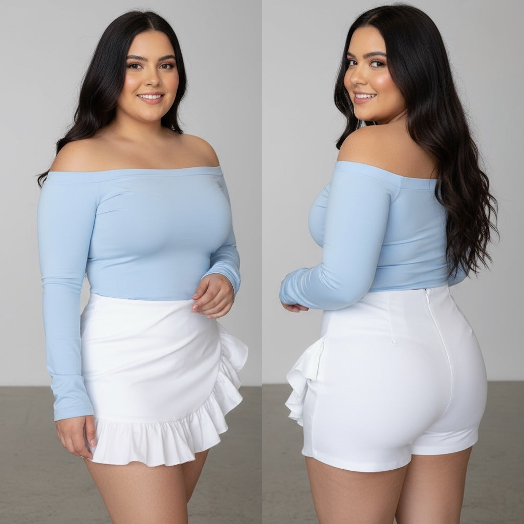 La comodidad de los shorts y la coquetería de una mini falda, en una sola prenda! Tecnología anti marcación de muslos, control de abdomen fuerte, sistema levanta cola, marcación de cintura, talle súper alto, elaborado en dril satinado stretch lo que significa que estira y no se deforma al usarlo. Bolero delantero ubicado estratégicamente para cubrir parte interior de los muslos, cremallera trasera en cobre para más seguridad.