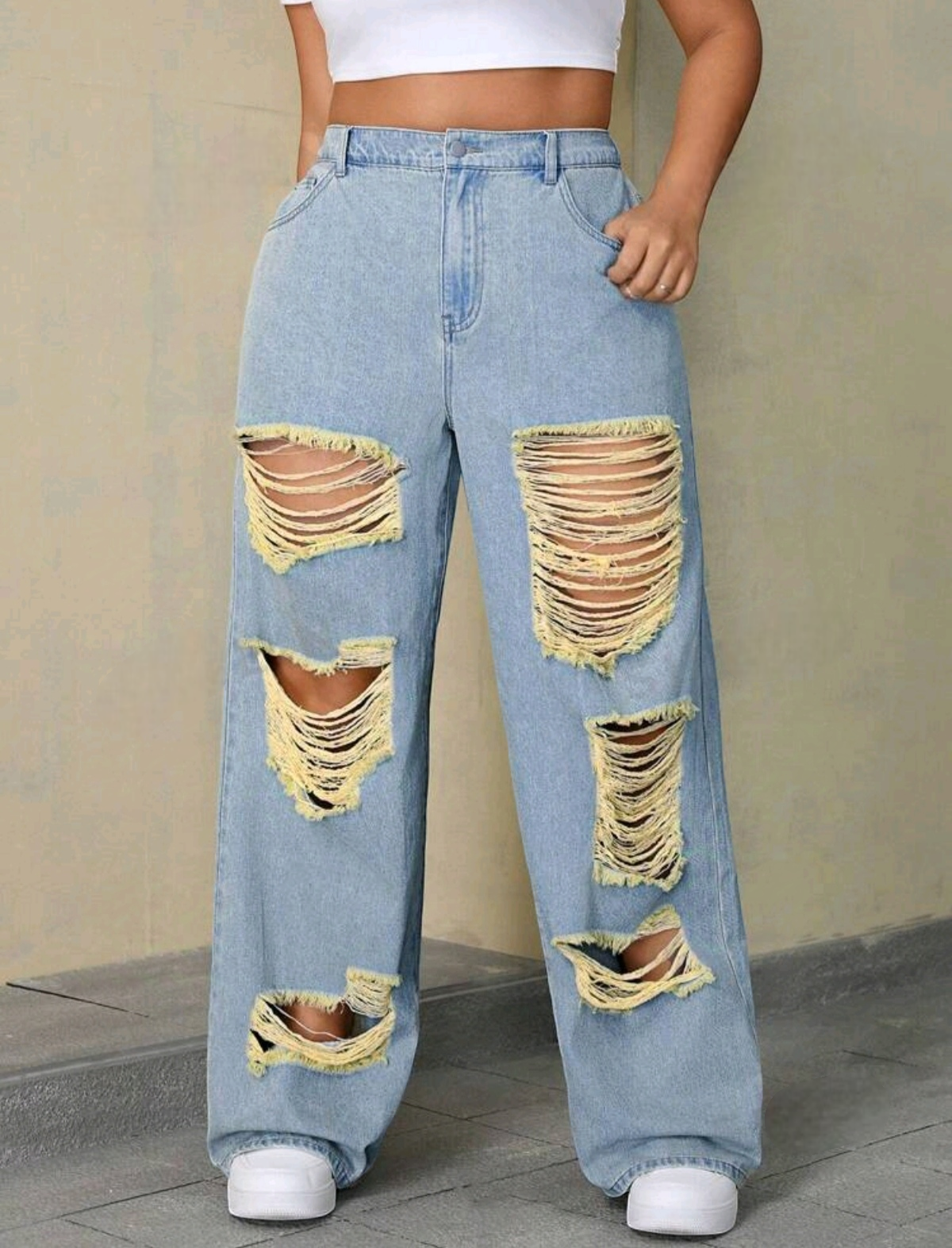 ¡Hazte con una pieza única que elevará tu estilo a nuevas alturas! Presentamos nuestro exclusivo jean de diseño de pierna ancha en un hermoso tono azul claro, la elección perfecta para destacar con audacia.
