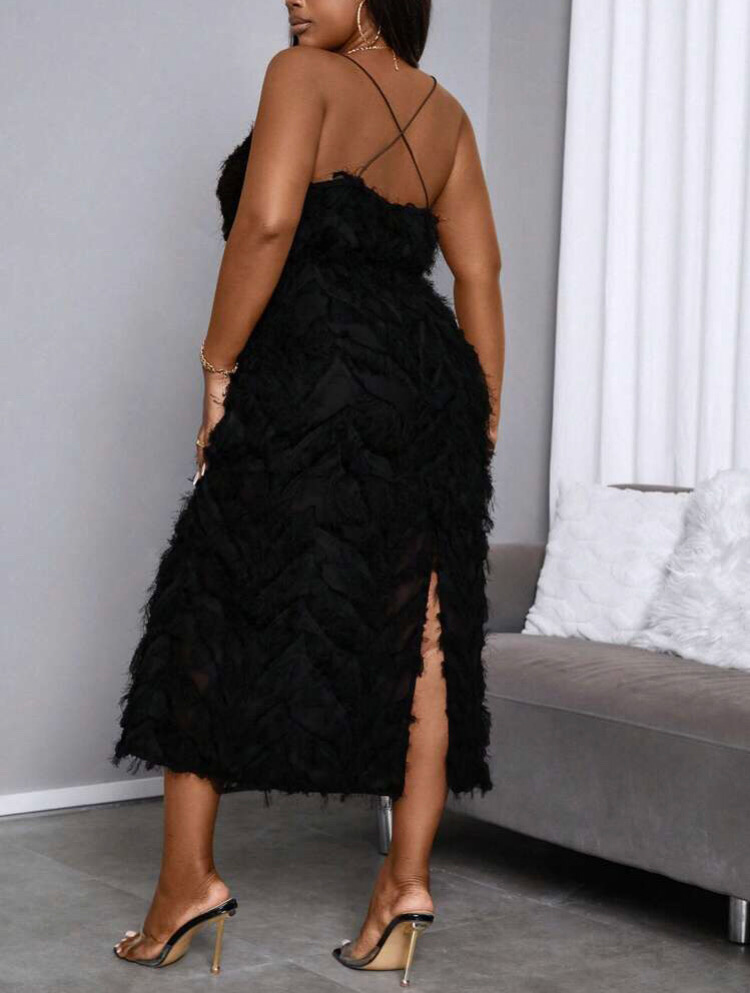 Una pieza diseñada con delicadeza para realzar la belleza natural de las mujeres curvy. Con una espalda al aire y tirantes finos, este vestido fusiona la sensualidad con la discreción de manera elegante. Su diseño refinado y cuidadosamente elaborado lo hace irresistible, una adición encantadora a cualquier guardarropa. Perfecto para ocasiones especiales, para lucir tu estilo con confianza, este vestido te invita a sentirte bella y segura en cualquier momento."