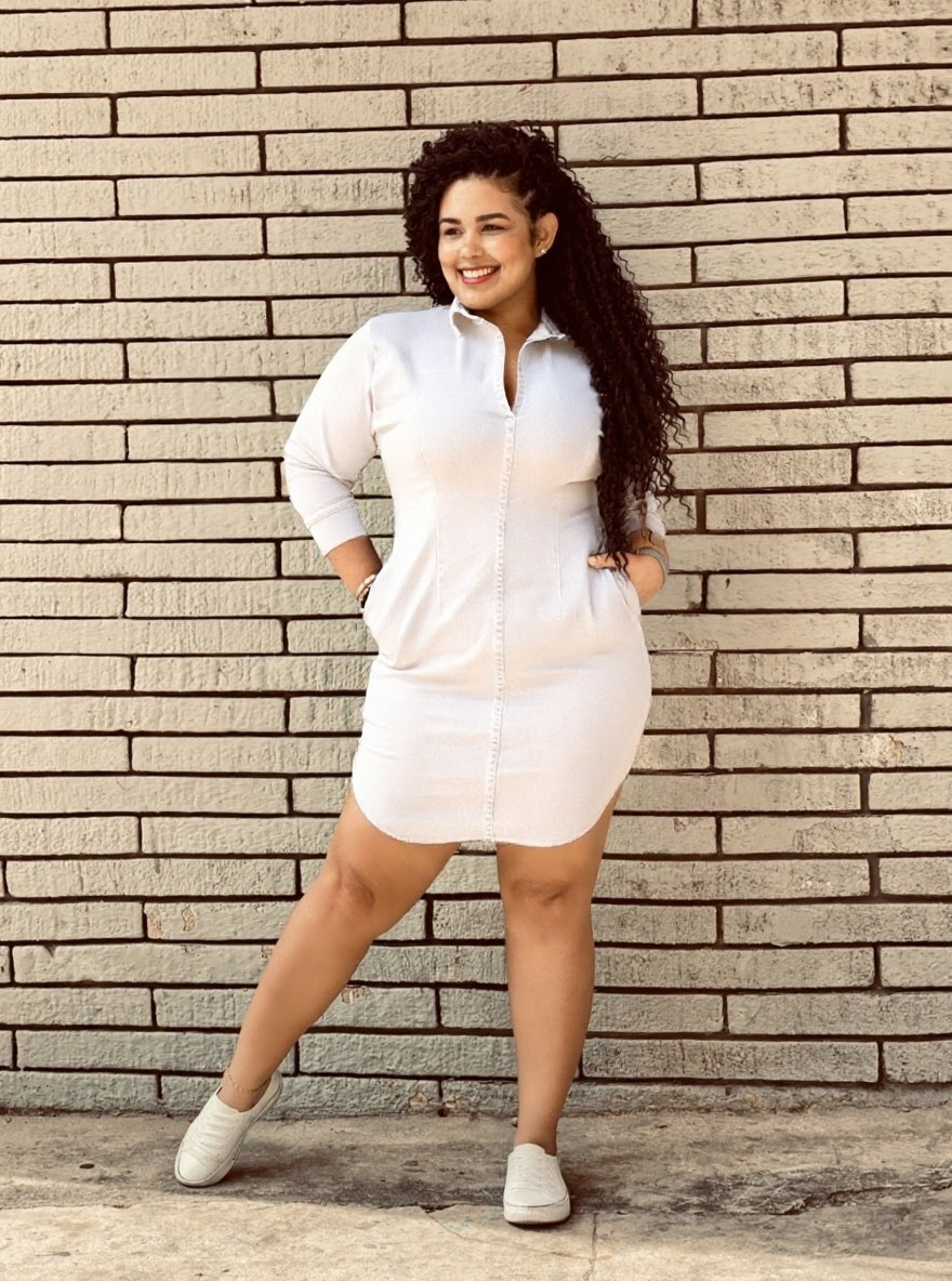 Referencia: Nuestra modelo usa normalmente talla 16 en jeans y usa talla L en nuestro talego mango Light . Se envían con largo bajo la rodilla en tu talla correcta, así podrás decidir tu misma que tan corto lo quieres.